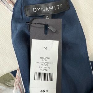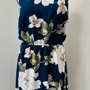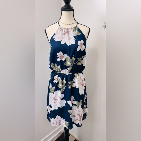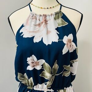 Dynamite Floral Halter Neck Dress Navy and White Sleeveless Elastic Waist M