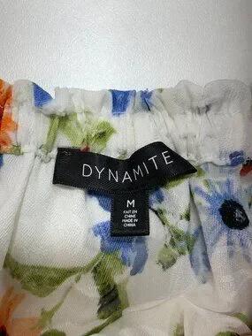 Dynamite Floral Medium Sheer Ruched Spring Summer Blouse