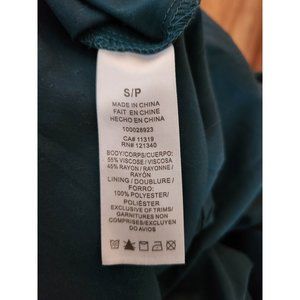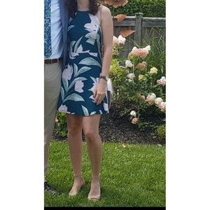 Teal floral mini dress with beautiful light pink flowers and light green leaves