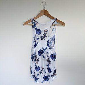 Nice casual tank top from Dynamite, with a blue floral pattern. Functional zipper on the front. Size small