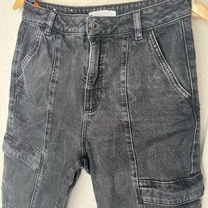 Black denim cargo jean from Dynamite. Great quality denim, side picket details, high waist, and tapered leg. From a pet free and smoke free home, excellent condition.