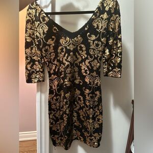 Dynamite Gold and Black Sequins Dress - 3/4 Length Sleeves - New Years/ Party