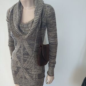 Dynamite Gray and Cream Cowl Neck Sweater Top
