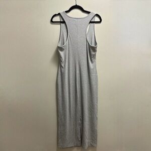 Dynamite Grey Ribbed Henley Dress XL | Button Front Stretch Midi