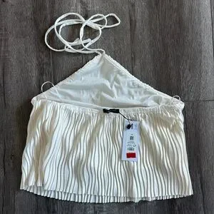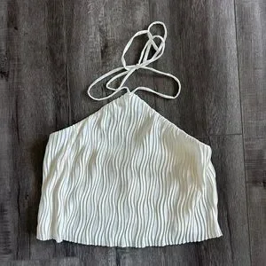 This elegant white halter top is perfect for any occasion. Its sleek design offers a chic and modern look. Pair it with your favorite jeans or skirt for a stylish ensemble.