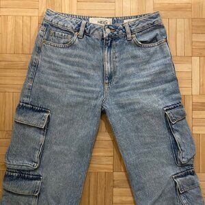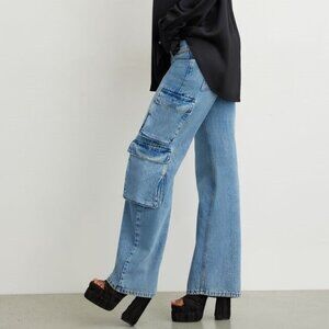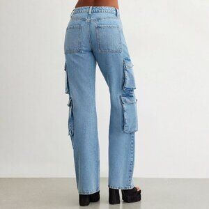 Dynamite Heidi Blue Wide Leg Cargo Denim Jeans