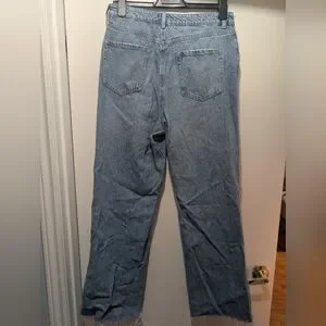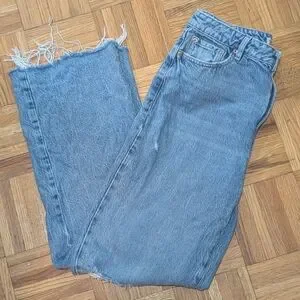 Stylish high rise jeans. Frayed hem for a trendy look. Perfect for casual wear.