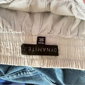 These high-waisted shorts from Dynamite feature a vibrant yellow and cream color palette, perfect for a summer-ready look. Crafted from lightweight fabric, they offer a relaxed fit ideal for casual outings. The abstract animal print adds a touch of bold style to your wardrobe.
