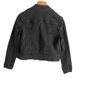 This is a jean jacket in a washed black stretch denim by Dynamite.