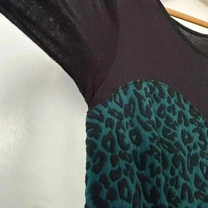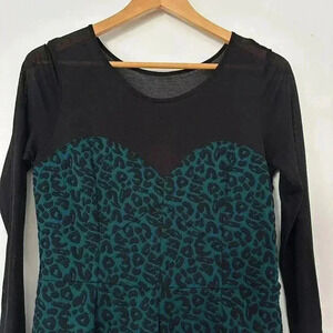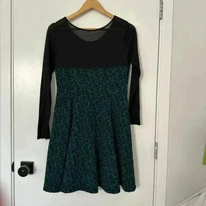 Dynamite Mesh Type Long Sleeve Slinky Dress Floral Paisley Mini Dress Women's L Black Blue