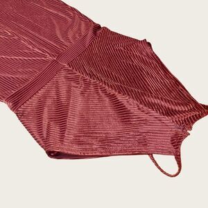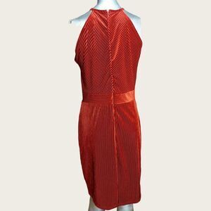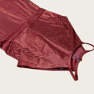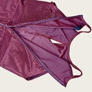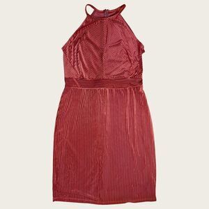 Pin stripe velvet pattern with keyhole cutout bust. High neck, size Large, zippered back. EUC