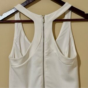 This elegant white sleeveless dress from Dynamite is perfect for any occasion. Its sleek design offers a timeless look. Gold zipper feature down back, size small. Brand NEW.