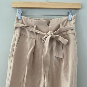 Dynamite NWOT High Waisted Paper Bag Khaki Pleated Tie Waist Trousers