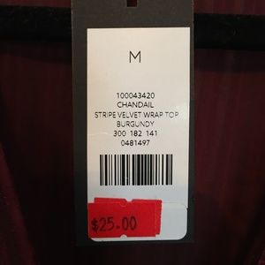 Velvet low-cut wrap front top in a burgundy colour with dolman sleeves.