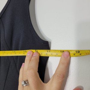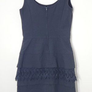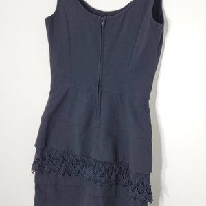 Chic black mini dress with tiered design. Sleeveless and stylish. Perfect for any event.