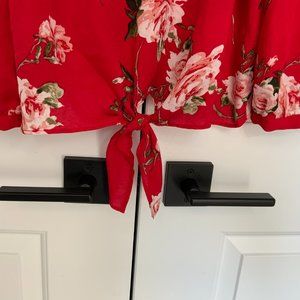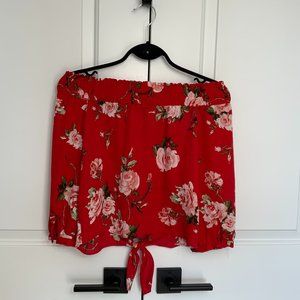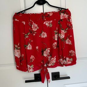 Other: Off the shoulder top with front bottom tie. Perfect for spring or summer. Lightweight. 3/4 length.