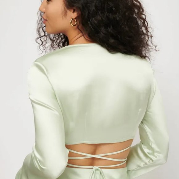 Dynamite Pastel Green Satin Wrap Top
