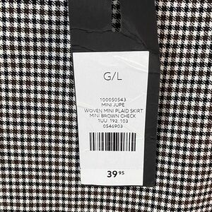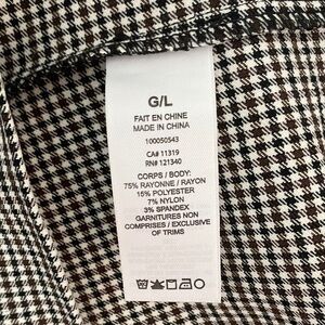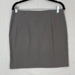 Dynamite Mini Pencil Skirt. Women’s tag size Large (see photos for measurements - taken unstretched). Rayon polyester spandex blend. Lots of stretch. Brown and black houndstooth pattern. Hidden elastic waistband. Front and back hip pleats.