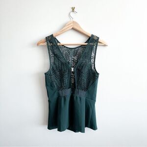 Dynamite Peplum Tank Top Lace Back Zip Christmas Green Women's S Pleated Stretch