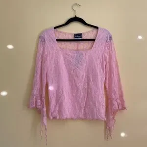 This pink blouse from Dynamite features an asymmetrical design with ruffled details, offering a chic and modern look. The 3/4 length sleeves add a touch of elegance, making it perfect for layering or wearing on its own. Crafted from lightweight fabric, it's ideal for warmer weather.
