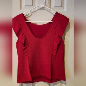 Elegant red top with ruffle sleeves. Perfect for any occasion. Stylish and comfortable.
