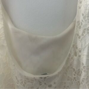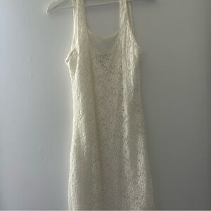 This Dynamite Retro Medium Semi-Formal Midi Lace White Dress is the perfect addition to your closet! It features a racer back, lace detailing and a second layer of fabric to limit transparency perfect for your next summer formal event. Smoke free environment. Open to reasonable offers and bundles on this product! Feel free to leave any comments you may have down below ⬇️