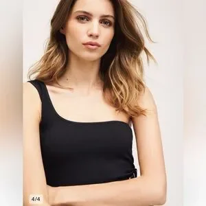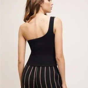 •This one-shoulder retro essential in an updated seamless fabric easily transitions from week to weekend with the right bottoms.