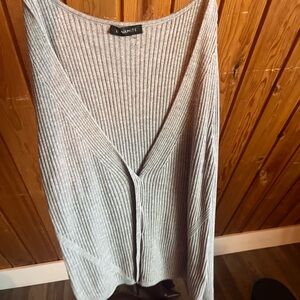 Stylish ribbed cardigan by Dynamite. Features a deep V-neck design. Perfect for layering.