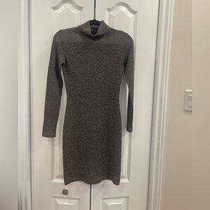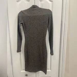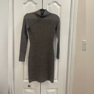 Dynamite, sweater dress, knit dress, ribbed dress, mock neck, long sleeve, fitted dress, grey dress, cozy chic, fall outfit, winter style, minimalist fashion, XS dress, casual elegant