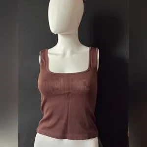 Dynamite Ribbed Square-Neck Tank Top - Chocolate Brown