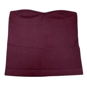 Maroon strapless top featuring a stretch ribbed knit texture. Designed with a subtle sweetheart neckline and an inner silicone gripper strip for a secure, non-slip fit.
