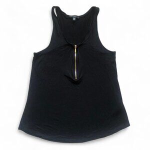 •indie sleaze rocker chick gold zip up slouchy tank 2010s DYNAMITE sexy top