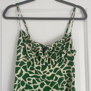 MY TAKE: Unique giraffe print in eye catching green. Flattering bust style for those of us small chested gals, but also for ladies with more to show off! Very light but quality feel fabric that lets you dance the night away. Perfect for a date night out, summer wedding guest or vacation dress.