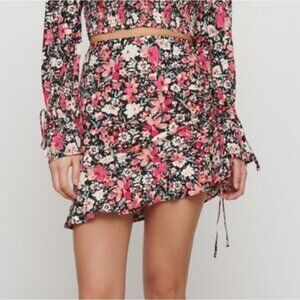 Dynamite Ruched Ruffle Floral Mini Skirt
