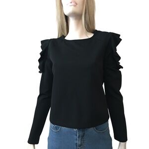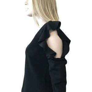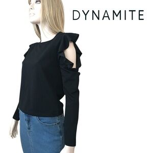 Dynamite Ruffled Cold Shoulder Black Top Blouse Textured Long Sleeve NWOT