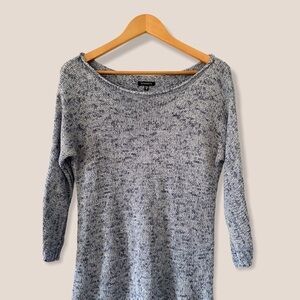 Wool-like scoop neck sweater. White and blue material. 100% acrylic. Excellent condition. Size XS.