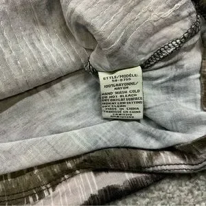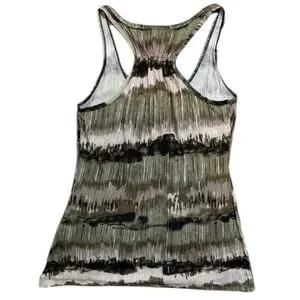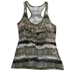 Army colours with sequins on front only. Same pattern on back. 100% rayon for smooth feel and bounce. Very soft and edgy! EUC