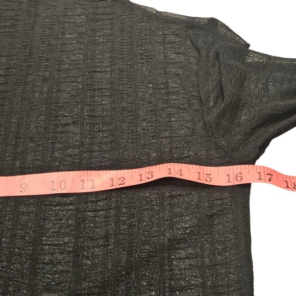 Sheer textured black blouse from Dynamite. Long sleeves. Short mock-turtleneck. Wear with something underneath or not!