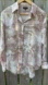 This shirt features a relaxed fit and a lightweight sheer fabric, perfect for casual outings. Its tan color and artistic design offer a neutral, earthy appeal, making it a versatile addition to any wardrobe. Great for layering.