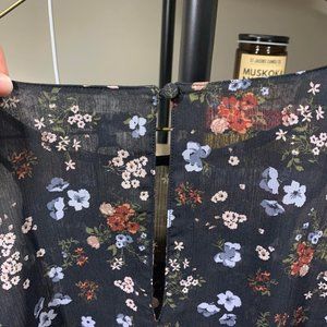 Sheer black floral blouse, lightweight. Sleeves feature frill detail and elastic ends. Only worn a handful of times so in great condition. Can be dressed up or worn casual. Only selling because I have similar pieces!