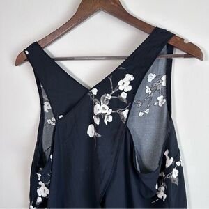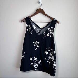 Dynamite Sleeveless Split Back Floral Blouse Black with White Floral Large
