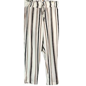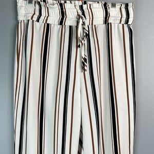Dynamite Striped Pants High Waist Elastic Drawstring Waist Ivory Brown Black M