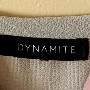 This stylish tank top from Dynamite features a stunning embellished neckline that adds a touch of sophistication to its sleek, sleeveless design. Crafted in a soft gray hue, the top combines modern style with a hint of edge, size medium. In good pre-owned condition, laundered and ready to wear.