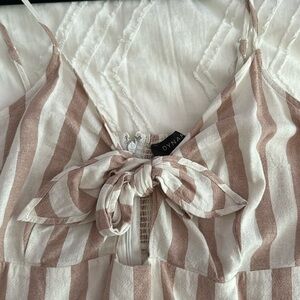 White&Tan stripped sundress with tie and small cutout at chest area