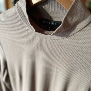 Dynamite Taupe Ribbed High-Neck Dress