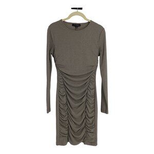 Dynamite Taupe Ruched Shirred flattering Bodycon long sleeve Mini Dress size M