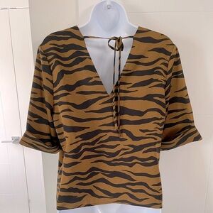 Dynamite/ Tie back/ Satin feel/ Short sleeve/ Zebra print/ Size US M
