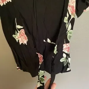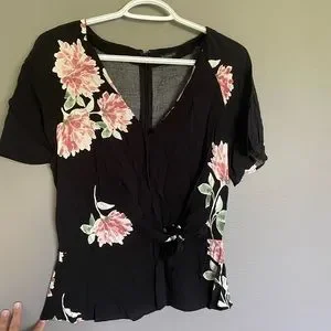 Dynamite top. Size small. Fits small-medium. Tie at the waist. 3/4 zipper in the back. Flare sleeves.