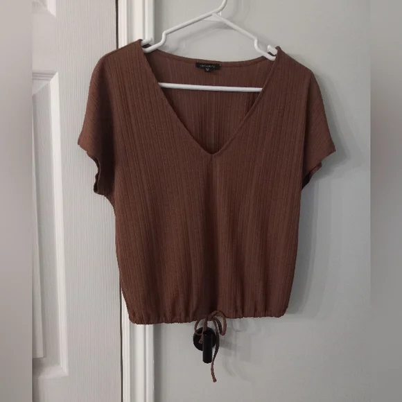 Womens Dynamite Top New never been worn chocolate brown textured Top with bottom adjustable tie