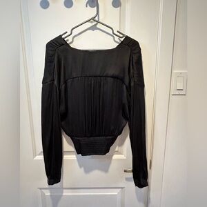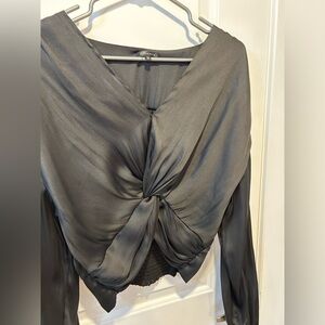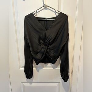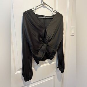Elevate your style with this elegant and versatile blouse from Dynamite. Made from a soft satin-like fabric with a beautiful sheen, this top features a modern front twist design that creates a flattering and feminine silhouette. Perfect for a night out, a special occasion, or a chic office look.